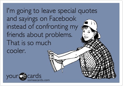 It was an excellent learning and something I absolutely intend to integrate into my life and relationships. What we didn’t talk about, however, is how you switch to assertive, when you have gone too far down the passive and passive-aggressive avenue with someone. I’ve talked about a recent situation in which I had been very passive (and in retrospect possibly a little passive aggressive like the ecard below) here and yesterday I finally decided to stand up for myself.