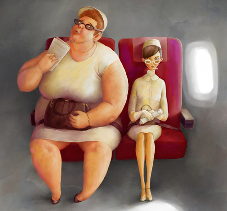 The part I just can’t seem to get used to, though, is the face of a fellow traveler when he realizes that I will be crammed into the seat next to him, taking up the shoulder/elbow space and sucking all the oxygen from the row. Having run out of alternatives at that point, all that is left for me to do is tangle myself into a knot that is least likely to spill into his space, try not to move or touch and spend the next couple of hours feeling guilty about the discomfort I have caused this undeserving victim.