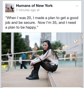 It seems, recently the internet (and the universe in general) has had a way of delivering the message I need until I’m actually ready to hear it. A few days ago, one of my most favorite websites/Facebook pages, Humans of New York (which is the epitome of human connection), posted this picture, which describes my situation to a T: