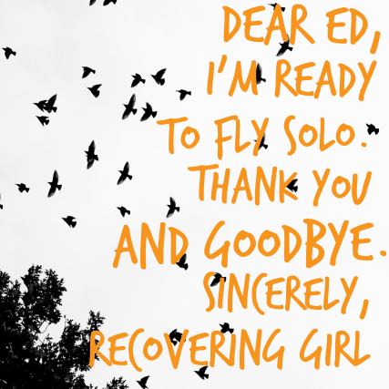 I’ve been trying to break up with ED for years, but I never acknowledged the reasons why I brought him into my life in the first place (partly because I didn’t really know and partly shame about needing him or having any needs at all). Without identifying my true needs and finding other ways to fill them, I kept going back to this abusive relationship, because I ended up feeling lost, empty and alone without ED. I’ll just share the letter with you today and will expound on each of the themes more throughout the week.