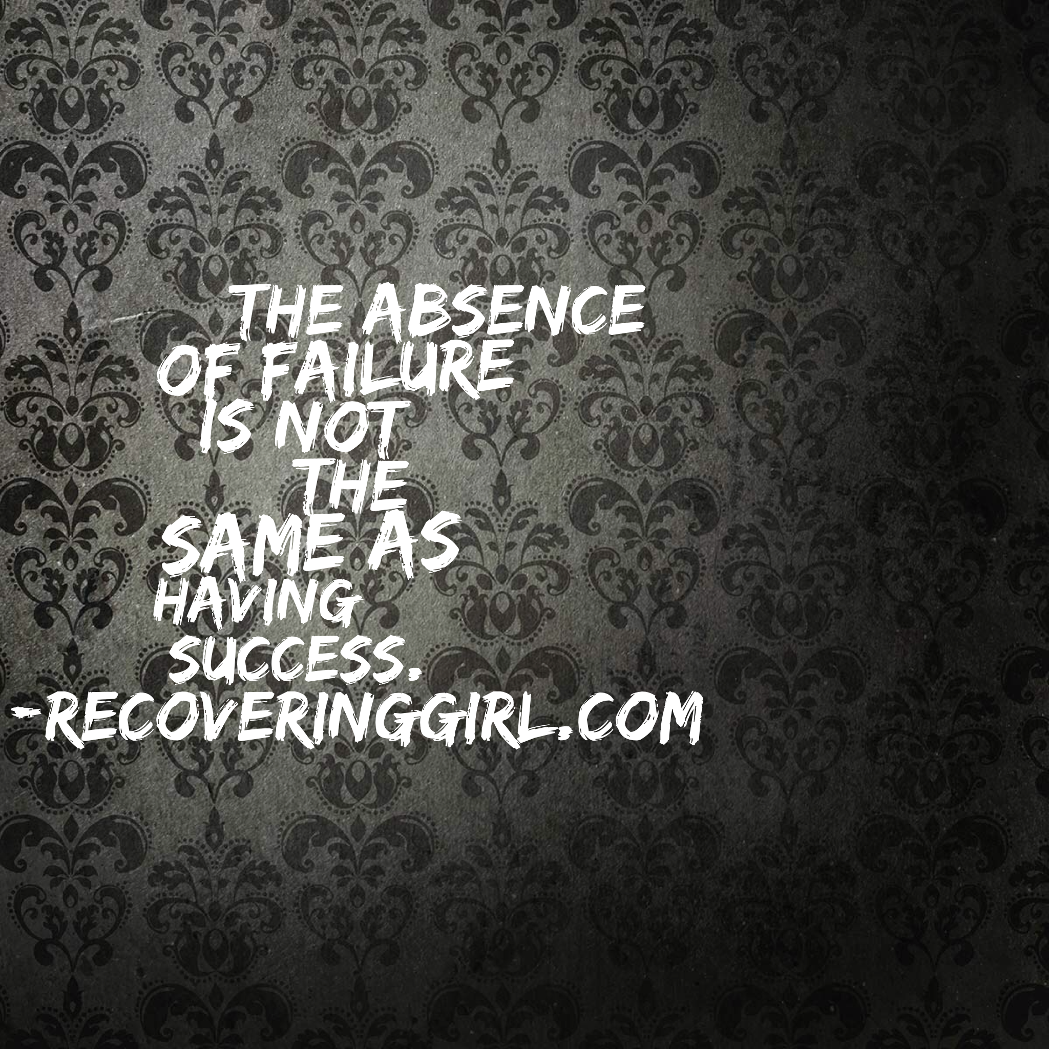 But it’s time to challenge this false belief that not confirming a failure, or disappointment, is not also a failure. Even if I think there’s a 99% chance I’ll fail at something I attempt, there’s at least a 1% chance of being successful. If I don’t try, I might never know that there is a 99% chance of failure, but I also don’t have the 1% opportunity to succeed. The absence of failure is not the same as having success. I would rather fail 10 times a day in recovery, to see a glimmer of progress every once in a while, than continue to blame myself for not trying.