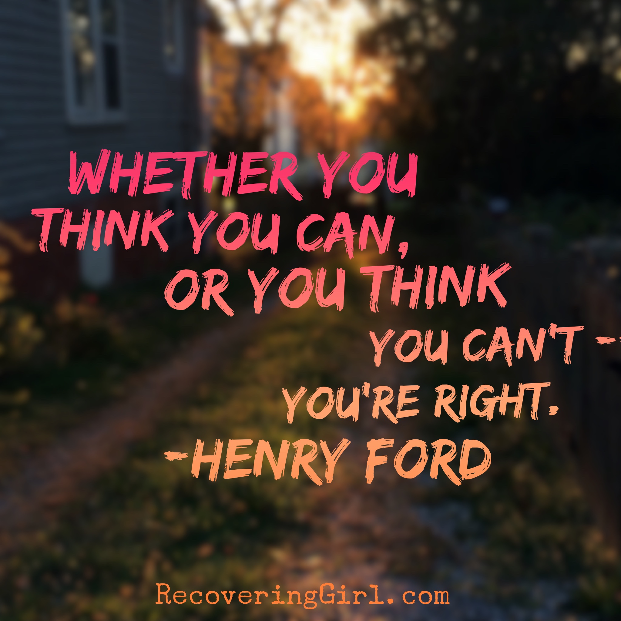 I used to think this meant that if you think you can’t you won’t try, thus confirming your “can’t” status. While that may very well be the case, I now think there is a deeper, more useful meaning to this quote. **I have to laugh at my knack for the dramatic… this is literally where I stopped two years ago, without making any notes about what my grand epiphany might have been, but thankfully I have some new insights to finish this up.**